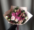 Ароматный цветочный букет в составе кустовые розы, Альстромерия, Эустома, Роза эквадор