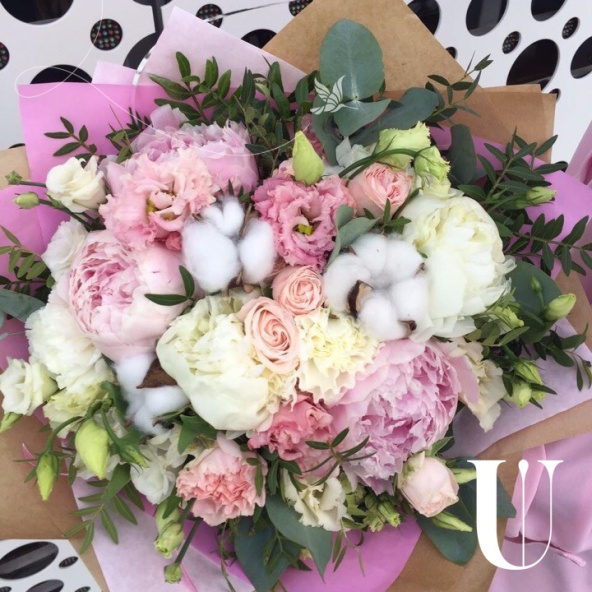 - Сборный ароматный букет в составе пионы