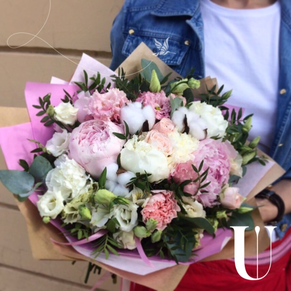 - Сборный нежный и воздушный букет в составе пионы