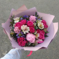 - Яркий сборный букет в составе: кустовая малиновая роза