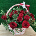 Корзина цветов "Корзина красных роз в зелени"