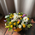 - В составе: Сантини Лимончелло-2шт; Эустома кружевная-3;Гиацинт-3шт;Роза кустовая-1шт; Скимия зелёная-3шт