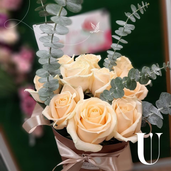 Цветы в коробке "Кремовый комплимент"