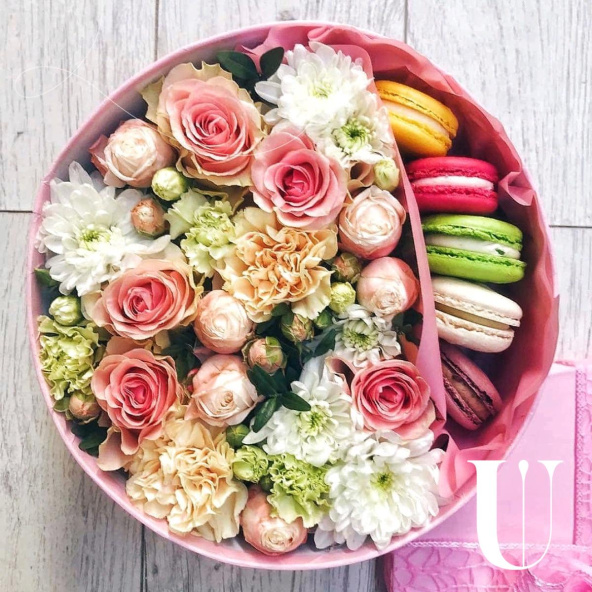 Цветы в коробке "Коробочка с макарунами №2"
