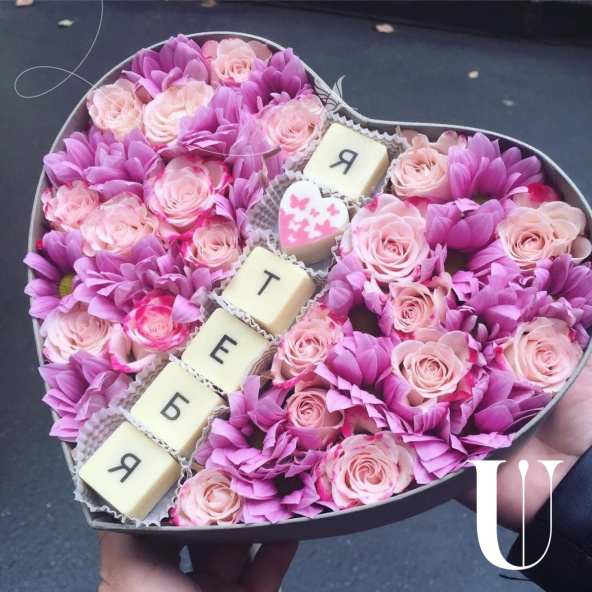 Цветы в коробке "Коробка Сердце №1"