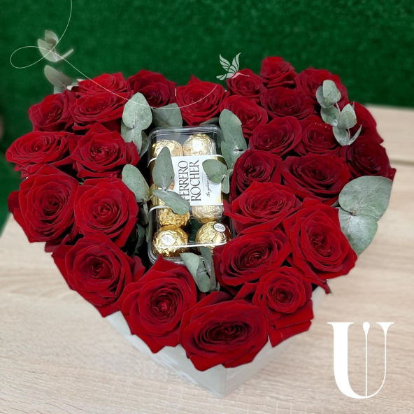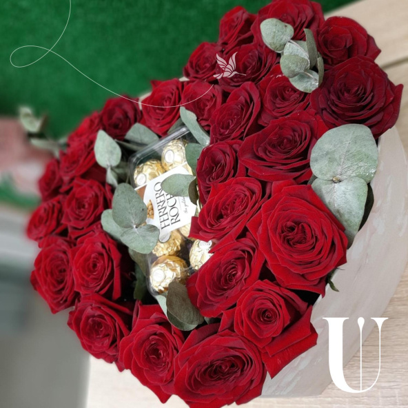 Коробочка роз в виде сердца с конфетами, лучше слов скажет о ваших чувствах