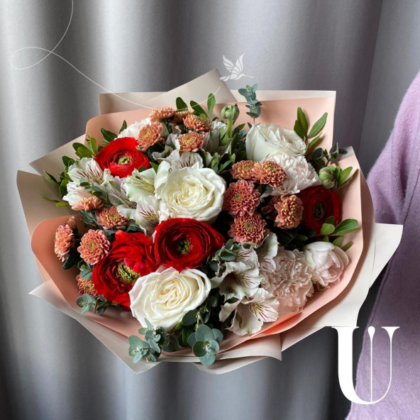 Ранункулюс-2 Роза пионовидная-2 Сантини-3 Эустома-1
