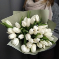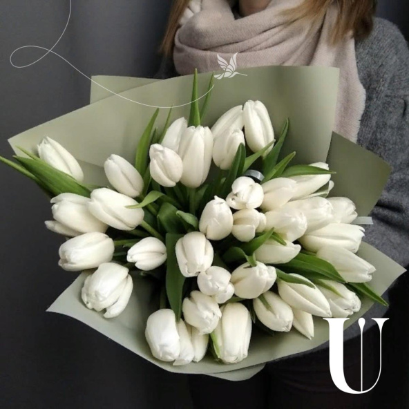 Монобукет из 9 белых роз Россия 60 см в крафтовой упаковке