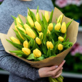Монобукет из 7 роз микс в дизайнерской упаковке