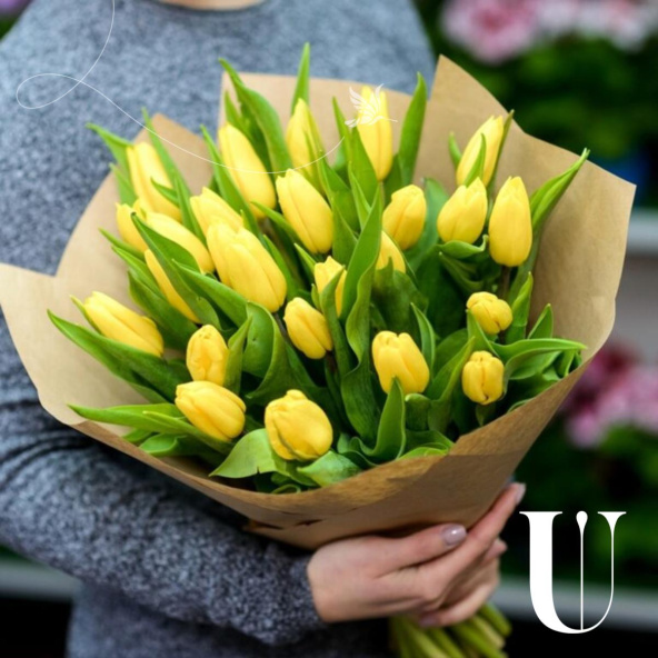 Весенний букет из синих ирисов и альстромерий микс в крафтовой упаковке
