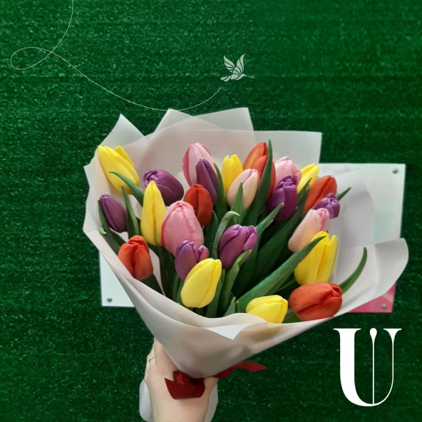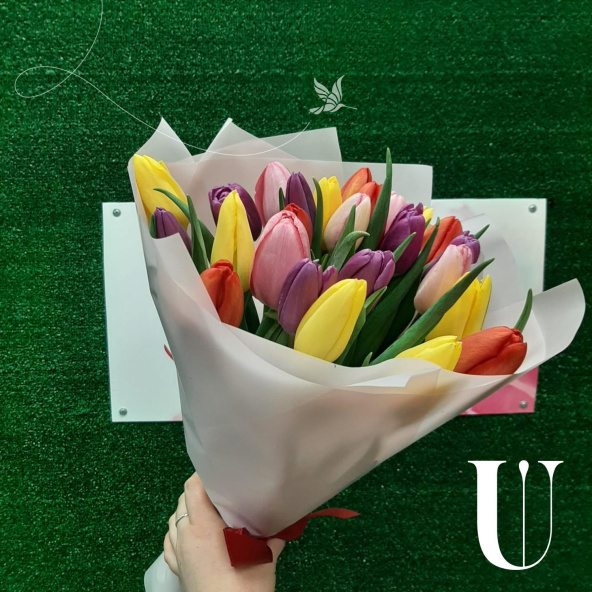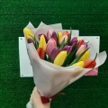 Композиция из красных роз и альстромерий микс в крафтовой упаковке