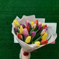 Монобукет из рыжих и красных роз в крафтовой упаковке