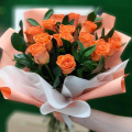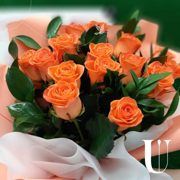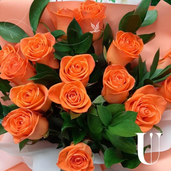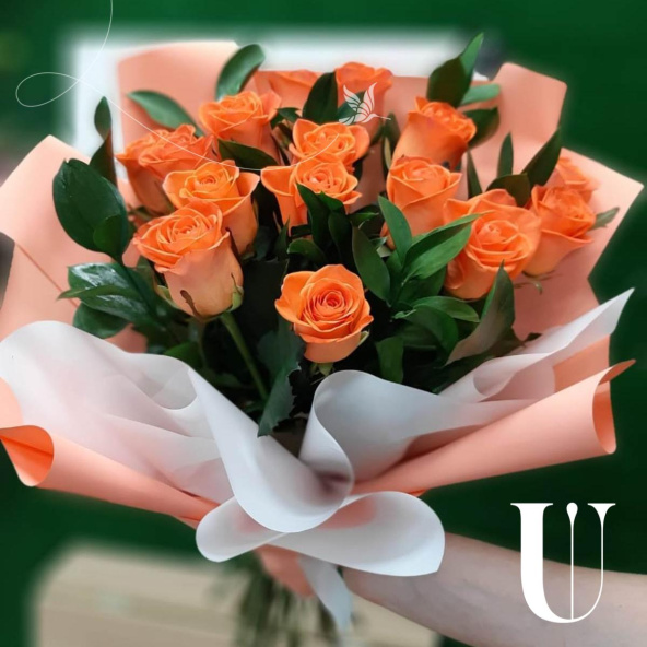 Монобукет из 15 красных роз в дизайнерской упаковке