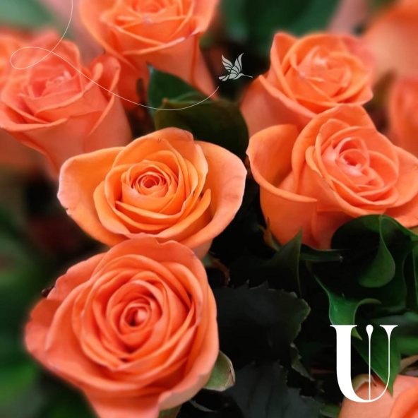 Букет из коралловых роз и ароматной лаванды в стильной упаковке