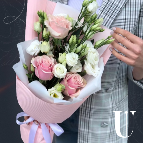 Классический сборный букет "Лия" в матовой пленке с атласной лентой - это стильный и изысканный подарок, который подойдет для любого повода. В составе букета 3 розовые розы и 4 белые эустомы, в сочетании они создают гармоничную и насыщенную композицию. Этот стильный и элегантный букет станет отличным подарком на любой праздник или торжество.