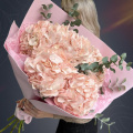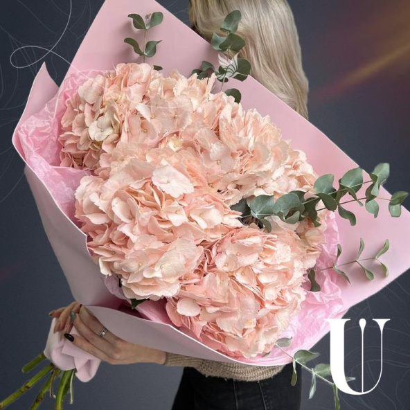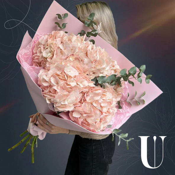 Монобукет "Ганна" из розовых гортензий с эвкалиптом в крафте с атласной лентой - это стильный и изысканный подарок, который подойдет для любого повода. В составе букета 5 розовых гортензий и ветви эвкалипта. Розовые гортензии символизируют любовь, романтику и искренние эмоции. Ветви эвкалипта добавляют букету свежести и нежности. Соцветия гортензии крупные и пышные, что придает букету "Ганна" особенный шарм.