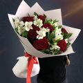 Сборный букет "Ася" из красных роз и белой альстромерии в матовой пленке с атласной лентой - это стильный и изысканный подарок, который подойдет для любого повода. В составе букета 15 цветов - 7 красных роз и 8 белых альстромерий. Красные Эквадорские розы - это высококачественные цветы, которые известны своими насыщенными оттенками и приятным ароматом, который долго будет радовать вас и ваших близких. Альстромерии в составе букета известны своей стойкостью и долгим сроком жизни, а также визуальной легкостью, свежестью и нежностью.