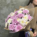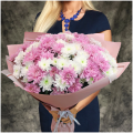 Букет из 15 белых и розовых кустовых хризантем Зембла в матовой пленке с атласной лентой - это стильный и элегантный подарок для любого повода. Разноцветные хризантемы в букете создают неповторимую нежную композицию, которая придется по вкусу даже самому искушенному получателю.