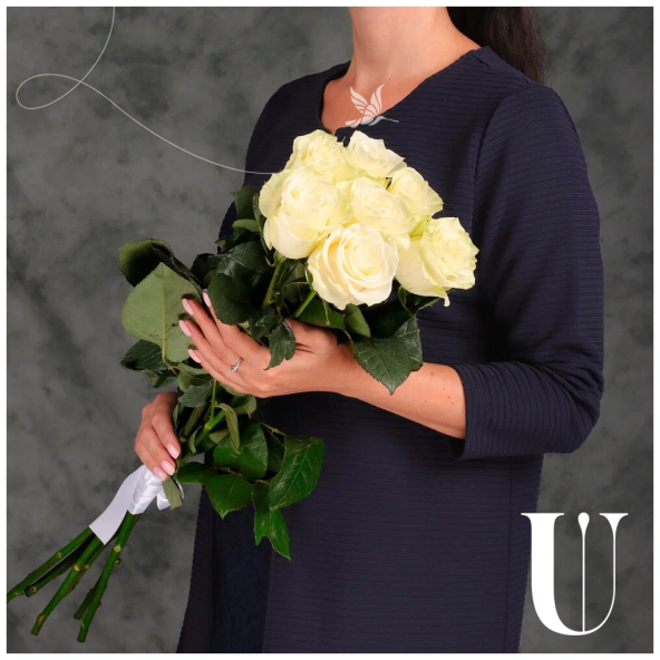 Монобукет из 7 белых Эквадорских роз 60 см с атласной лентой - это стильный и элегантный подарок, который подойдет для любого повода. В составе букета розы сорта Мондиаль, которые отличаются своим высоким качеством и красотой. Они имеют насыщенный белый цвет и приятный аромат, который будет радовать вас и ваших близких.