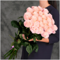 Букет из 25 нежно-розовых Эквадорских роз 60 см с атласной лентой - это стильный и элегантный подарок, который подойдет для любого повода. В составе букета розы сорта Пинк Мондиаль – это высококачественные цветы, которые известны своим насыщенным розовым цветом и приятным ароматом, который будет радовать вас и ваших близких.