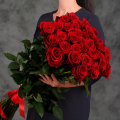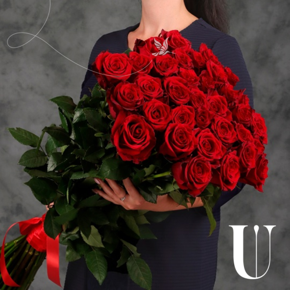 Букет из 35 красных Эквадорских роз 60 см с атласной лентой - это стильный и элегантный подарок, который подойдет для любого повода. В составе букета розы сорта Эксплорер – это высококачественные цветы, которые известны своим насыщенным красным цветом и приятным ароматом, который будет радовать вас и ваших близких.