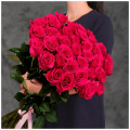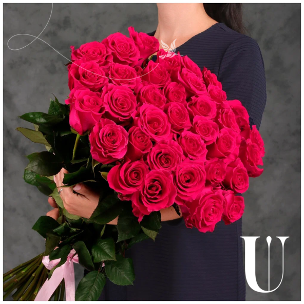 Букет из 35 розовых Эквадорских роз 60 см с атласной лентой - это стильный и элегантный подарок, который подойдет для любого повода. В составе букета розы сорта Пинк Флойд – это высококачественные цветы, которые известны своим насыщенным розовым цветом и приятным ароматом, который будет радовать вас и ваших близких.