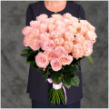 Букет из 45 нежно-розовых Эквадорских роз 60 см с атласной лентой - это стильный и элегантный подарок, который подойдет для любого повода. В составе букета розы сорта Пинк Мондиаль – это высококачественные цветы, которые известны своим насыщенным розовым цветом и приятным ароматом, который будет радовать вас и ваших близких.