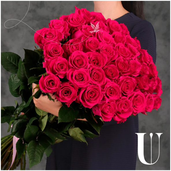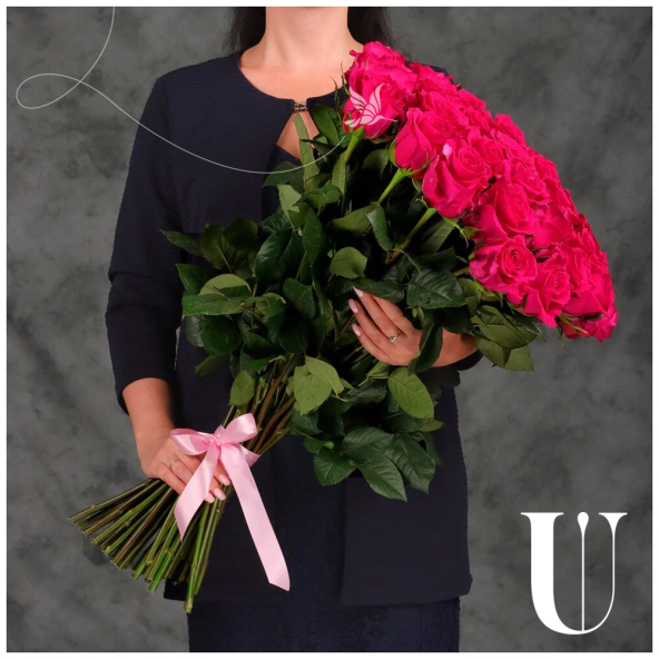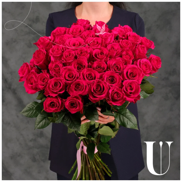 Букет из 45 розовых Эквадорских роз 60 см с атласной лентой - это стильный и элегантный подарок, который подойдет для любого повода. В составе букета розы сорта Пинк Флойд – это высококачественные цветы, которые известны своим насыщенным розовым цветом и приятным ароматом, который будет радовать вас и ваших близких.