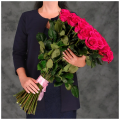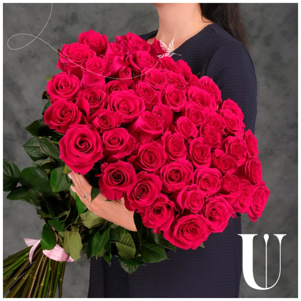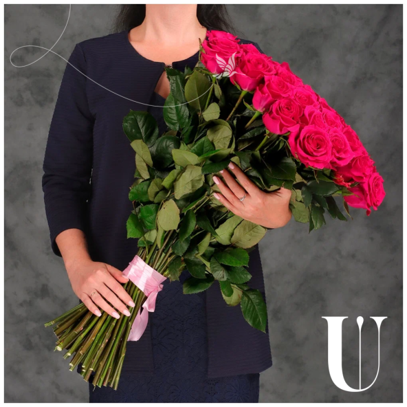 Букет из 55 розовых Эквадорских роз 60 см с атласной лентой - это стильный и элегантный подарок, который подойдет для любого повода. В составе букета розы сорта Пинк Флойд – это высококачественные цветы, которые известны своим насыщенным розовым цветом и приятным ароматом, который будет радовать вас и ваших близких.