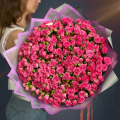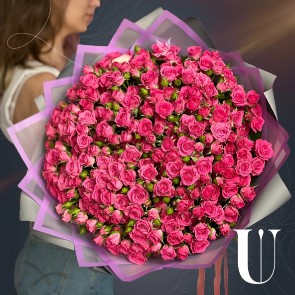 Букет из 51 розовой кустовой розы в матовой пленке с атласной лентой - это стильный и яркий подарок, который подойдет для любого повода. Розовые кустовые розы в составе букета отличаются повышенной пышностью и объёмностью бутона, а композиция из них выглядит утонченно и изысканно.