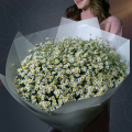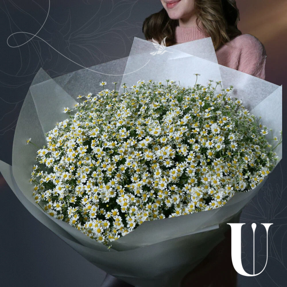 Выбирая большой букет из 51 белой кустовой ромашки в матовой пленке с атласной лентой, вы делаете прекрасный и запоминающийся подарок, который будет радовать получателя своей красотой и нежностью.