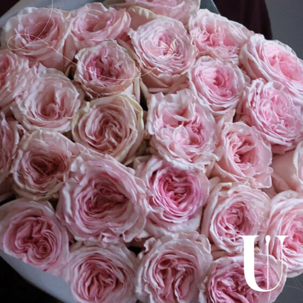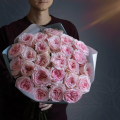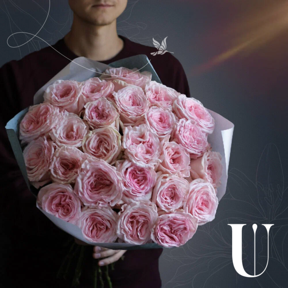 Монобукет из 25 пионовидных роз сорта Pink O'Hara в матовой пленке с атласной лентой - это изысканный и стильный подарок, который станет незабываемым сюрпризом для любого торжества или особого случая. Роскошные пионовидные розы сорта Pink O'Hara нежно-розового оттенка в составе букета обладают уникальной формой бутонов и незабываемым ароматом.