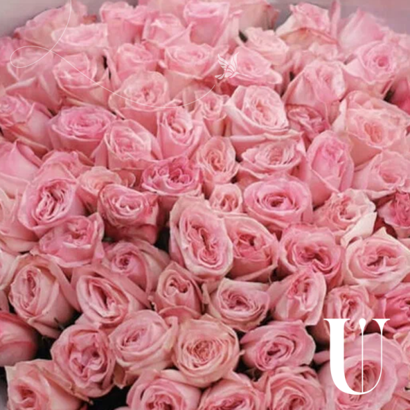Монобукет из 101 пионовидной розы сорта Pink O'Hara в матовой пленке с атласной лентой - это изысканный и стильный подарок, который станет незабываемым сюрпризом для любого торжества или особого случая. Роскошные пионовидные розы сорта Pink O'Hara нежно-розового оттенка в составе букета обладают уникальной формой бутонов и незабываемым ароматом.