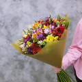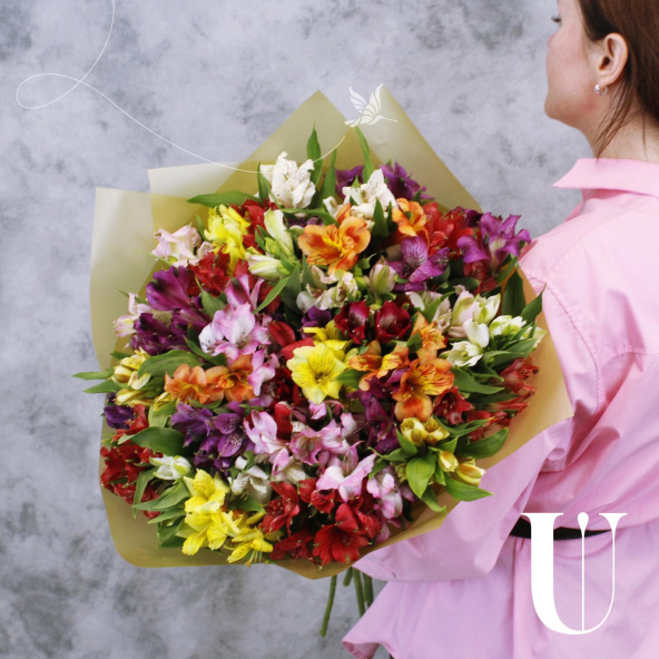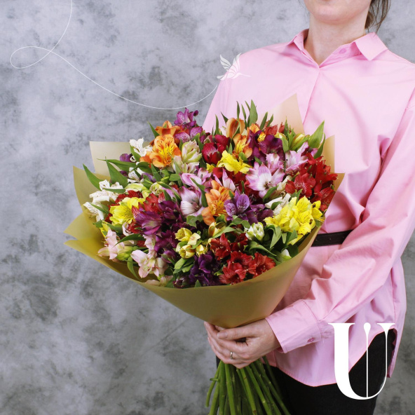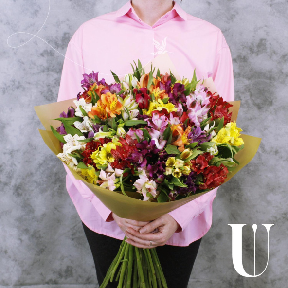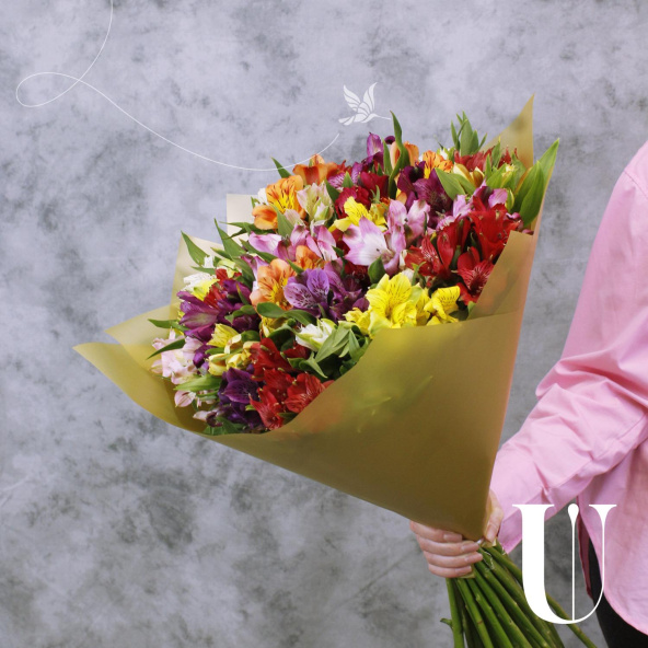 Монобукет из 35 альстромерий микс ярких оттенков в матовой пленке с атласной лентой - это изысканный и стильный подарок, который станет незабываемым сюрпризом для любого торжества или особого случая. Альстромерии в составе букета известны своей стойкостью и долгим сроком жизни, а также визуальной легкостью, свежестью и нежностью.