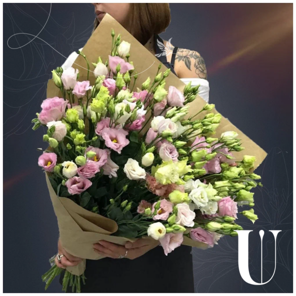 Букет из 25 разноцветных эустом в крафте с атласной лентой - это стильный и изысканный подарок, который подойдет для любого повода. Эустома (лизиантус) - это нежный цветок, родом из Америки, напоминающий миниатюрную розу. Они очень стойкие и долго будут радовать получателя своей красотой и элегантностью.