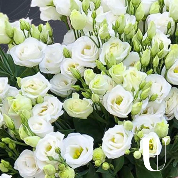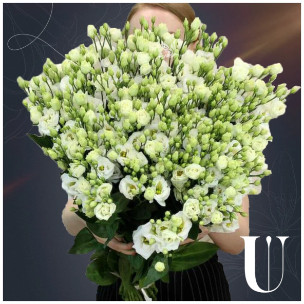 Букет из 51 белой эустомы с широкой атласной лентой - это стильный и изысканный подарок, который подойдет для любого повода. Эустома (лизиантус) - это нежный цветок, родом из Америки, напоминающий миниатюрную розу. Они очень стойкие и долго будут радовать получателя своей красотой и элегантностью.