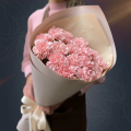 Монобукет из 15 розовых гвоздик в крафте с атласной лентой - это стильный и изысканный подарок, который подойдет для любого повода. В составе букета розовые гвоздики (диантусы), которые символизируют собой благодарность, заботу и уважение.