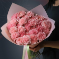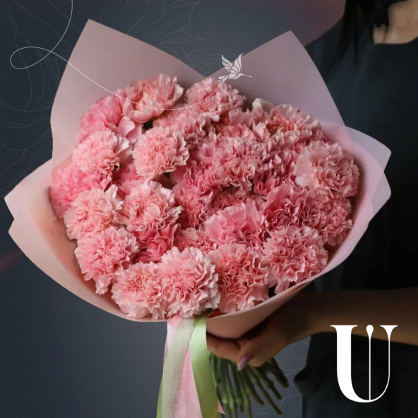 Выбирая монобукет из 25 розовых гвоздик, вы дарите знак благодарности и нежности, который, несомненно, будет оценен получателем.