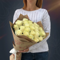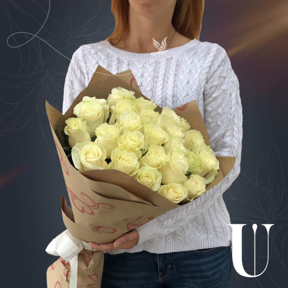Монобукет из 25 белых Эквадорских роз 50 см в крафте с атласной лентой - это элегантное и стильное решение для любого повода. В составе букета Эквадорские розы сорта Мондиаль, известные своей красотой, ароматом и высоким качеством. Букет выполнен в форме монобукета, что позволяет сконцентрировать внимание на красоте и изяществе цветов.