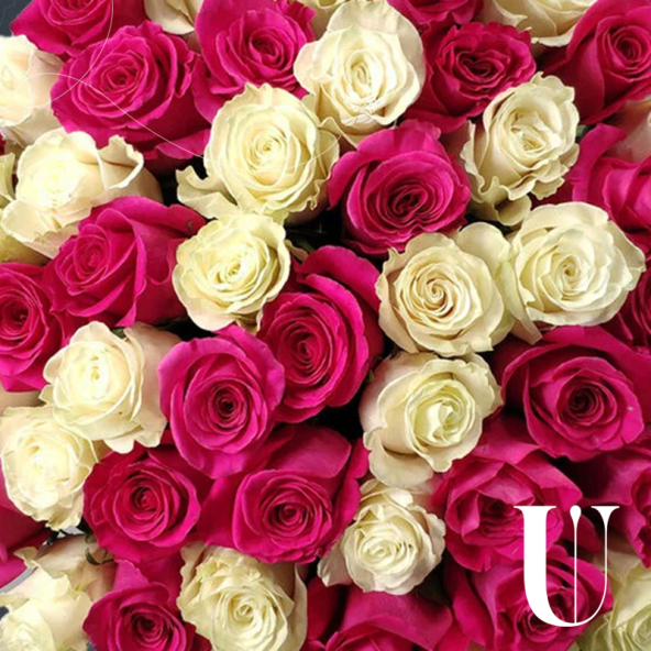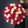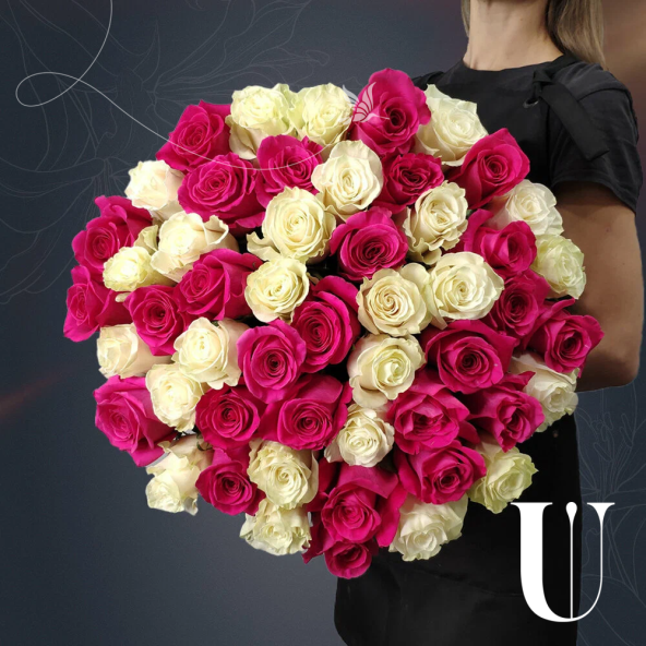 Монобукет из 51 Эквадорской розы микс - это элегантное и стильное решение для любого повода. В составе букета 51 белая и розовая Эквадорская роза сорта Мондиаль и Пинк Флойд, известных своей красотой, ароматом и высоким качеством. Букет выполнен в форме монобукета, что позволяет сконцентрировать внимание на красоте и изяществе цветов.