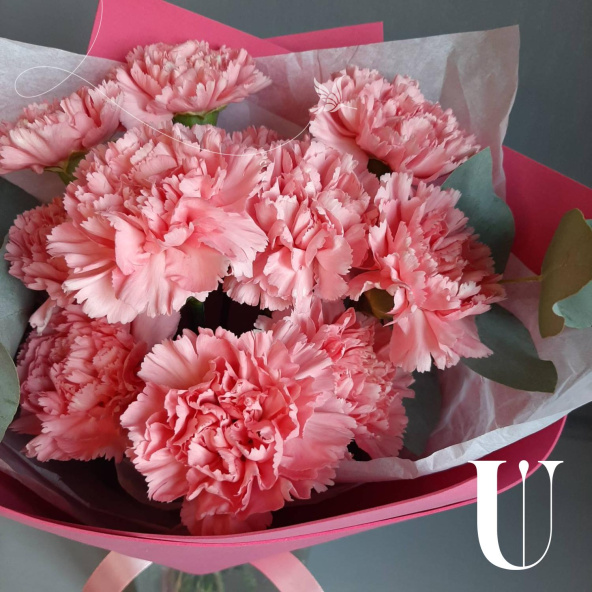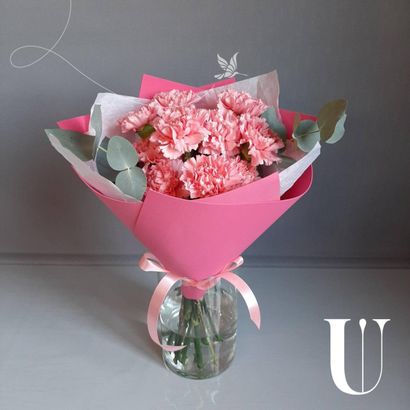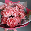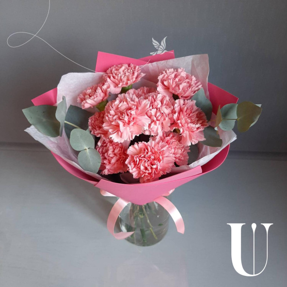 Яркий мини-букет из 7 гербер микс и писташи в упаковке