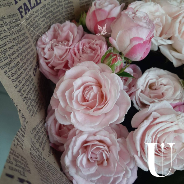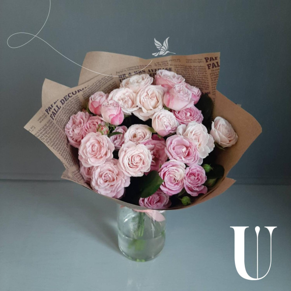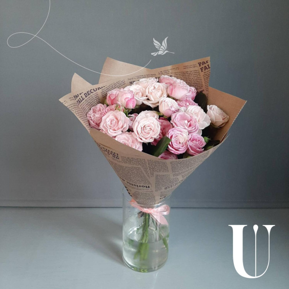 Монобукет из 7 роз микс в дизайнерской упаковке