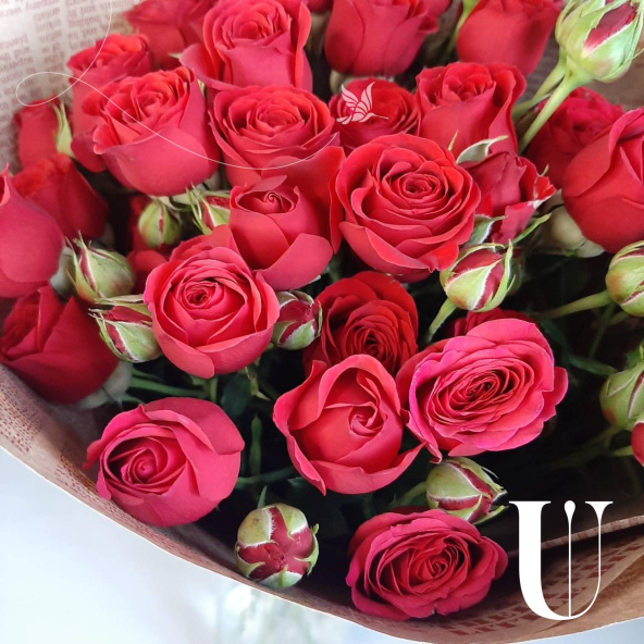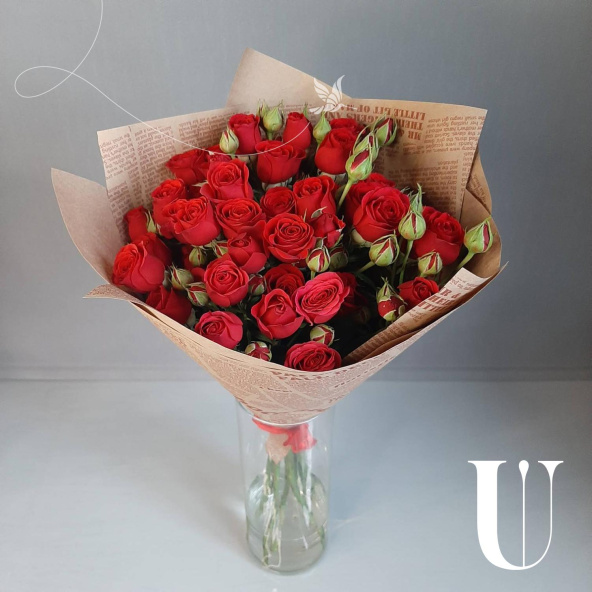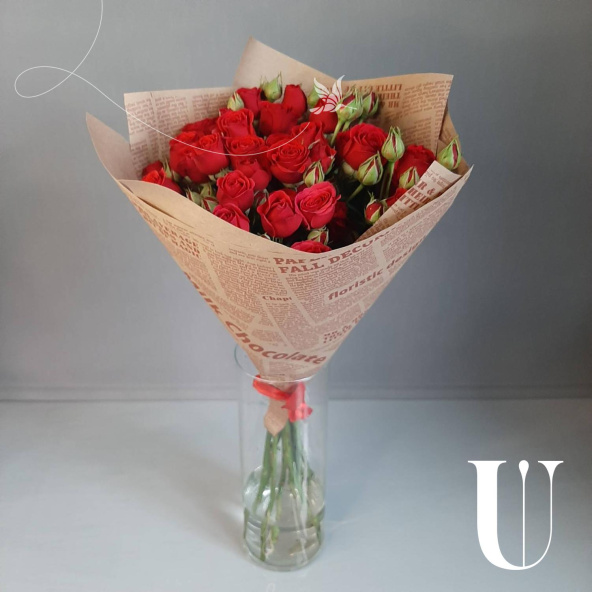 Монобукет из 7 роз микс в дизайнерской упаковке