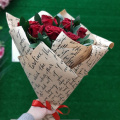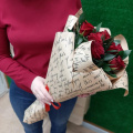 Монобукет из рыжих и красных роз в крафтовой упаковке