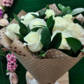 Не большой букет из 9 белых роз украшенный листьями зелени вносят свою нотку свежести и натуральности. Классику ни кто не отменял, поэтому эта красота может стать радостью для ваших близких по любому поводу!