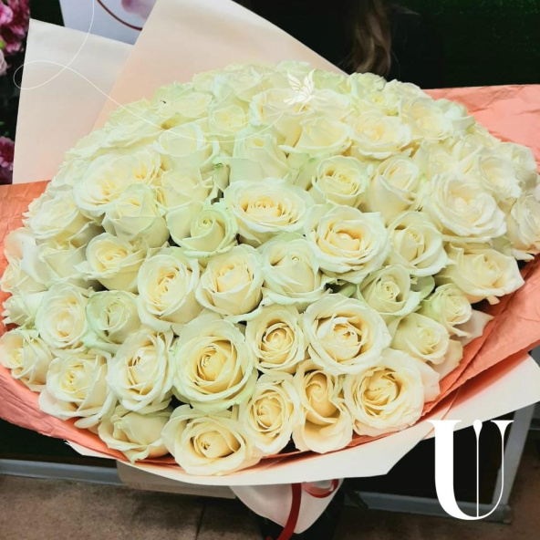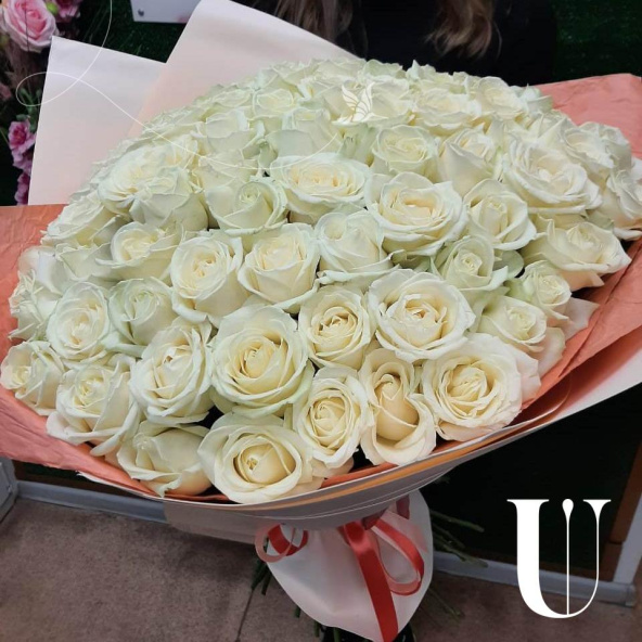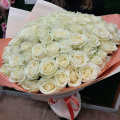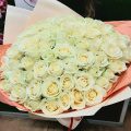55 белых роза в матовой пленке. Даже самые красивые цветы нуждаются в правильном оформлении