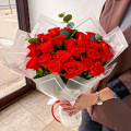 Монобукет из 15 красных роз в дизайнерской упаковке