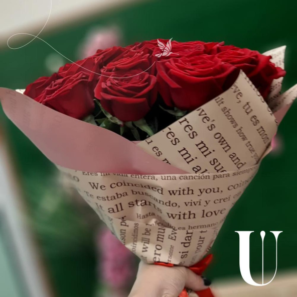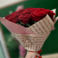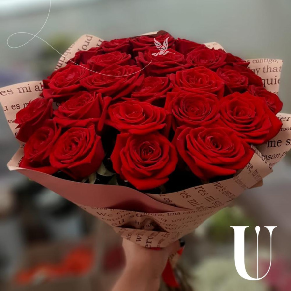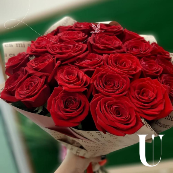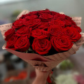 Монобукет из 15 красных роз в дизайнерской упаковке