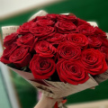 25 бордовых роз в модной пленке - это великолепный подарок любимому человеку