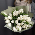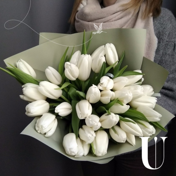 Авторский букет из самых весенних белых тюльпанов, в составе 35 штук